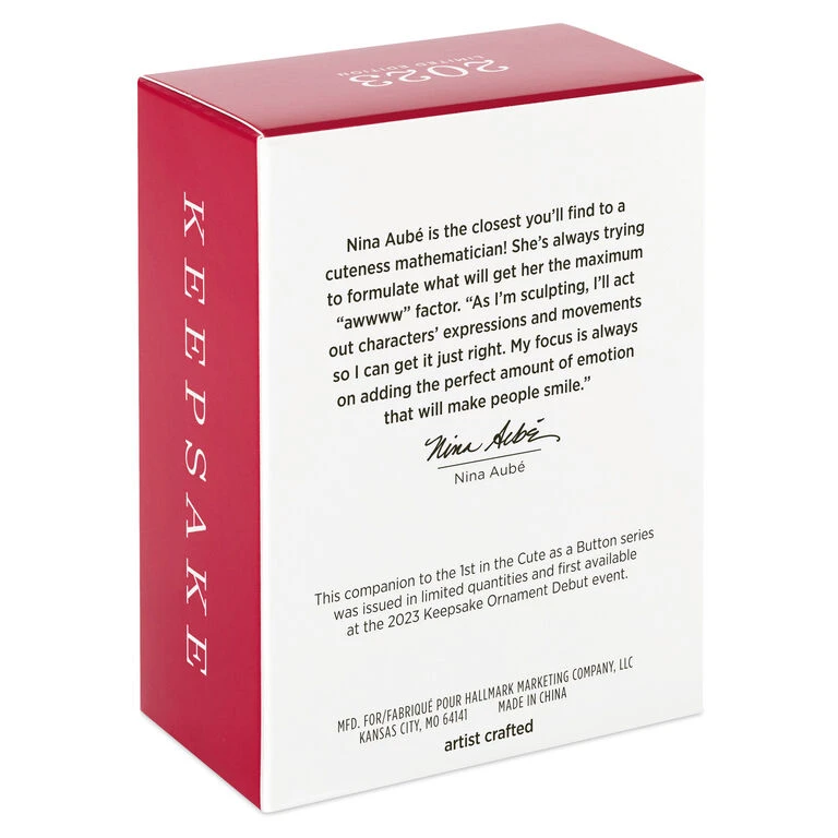 • Key Features: Limited quantity, first available at the 2023 Keepsake Ornament Debut event. Coordinating 2023 Cute as a Button ornament sold separately. Not eligible for Keepsake Wish List.