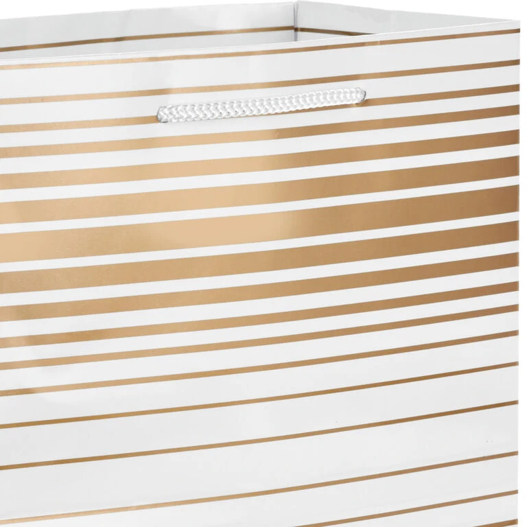 Bring shimmer and shine to birthdays or other special gift-giving occasions with this set of metallic-patterned gift bags. Pack of six bags include two of each size, all with shiny gold metallic ink accents. Two medium-size bags hold gifts like video games, DVDs, books and candles. Two large-size bags hold items such as toys, stuffed animals, puzzles and clothing. And two XL bags are generously sized to hold larger presents or multiple items of clothing, toys, and games.