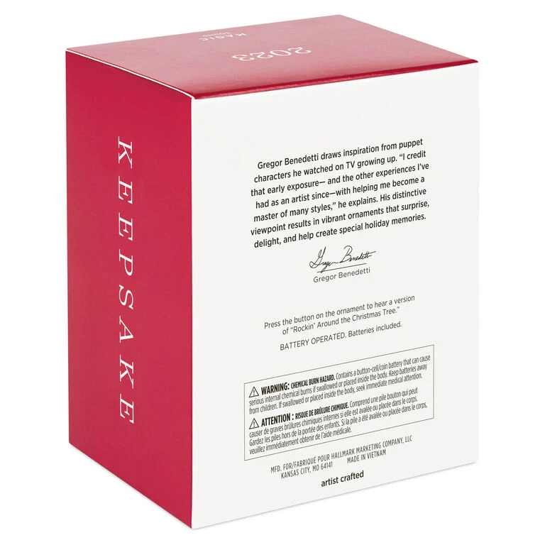 - Key Features: Press the button on the Magic Sound ornament to hear an instrumental version of “Rockin’ Around the Christmas Tree.”