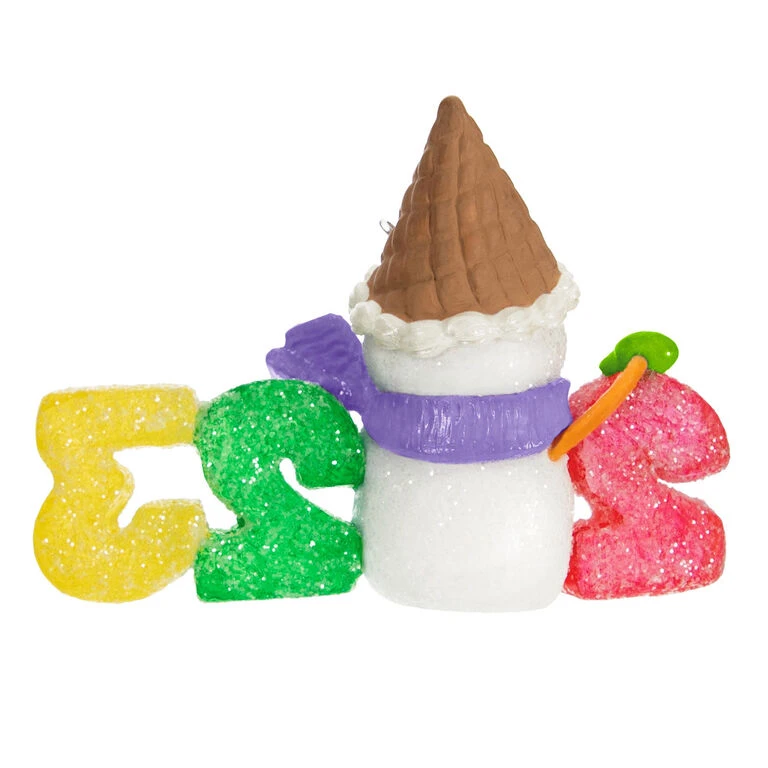 Celebrate a year to remember with this cute Christmas tree ornament. Featuring gumdrop numbers and a glittery snowman holding an ice cream cone in place of the “0” for “2023,” this decoration is perfect for anyone with a sweet tooth.